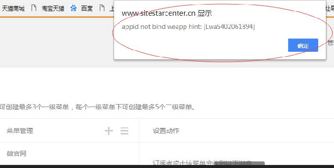 自定义菜单发布时提示appid not bind weapp